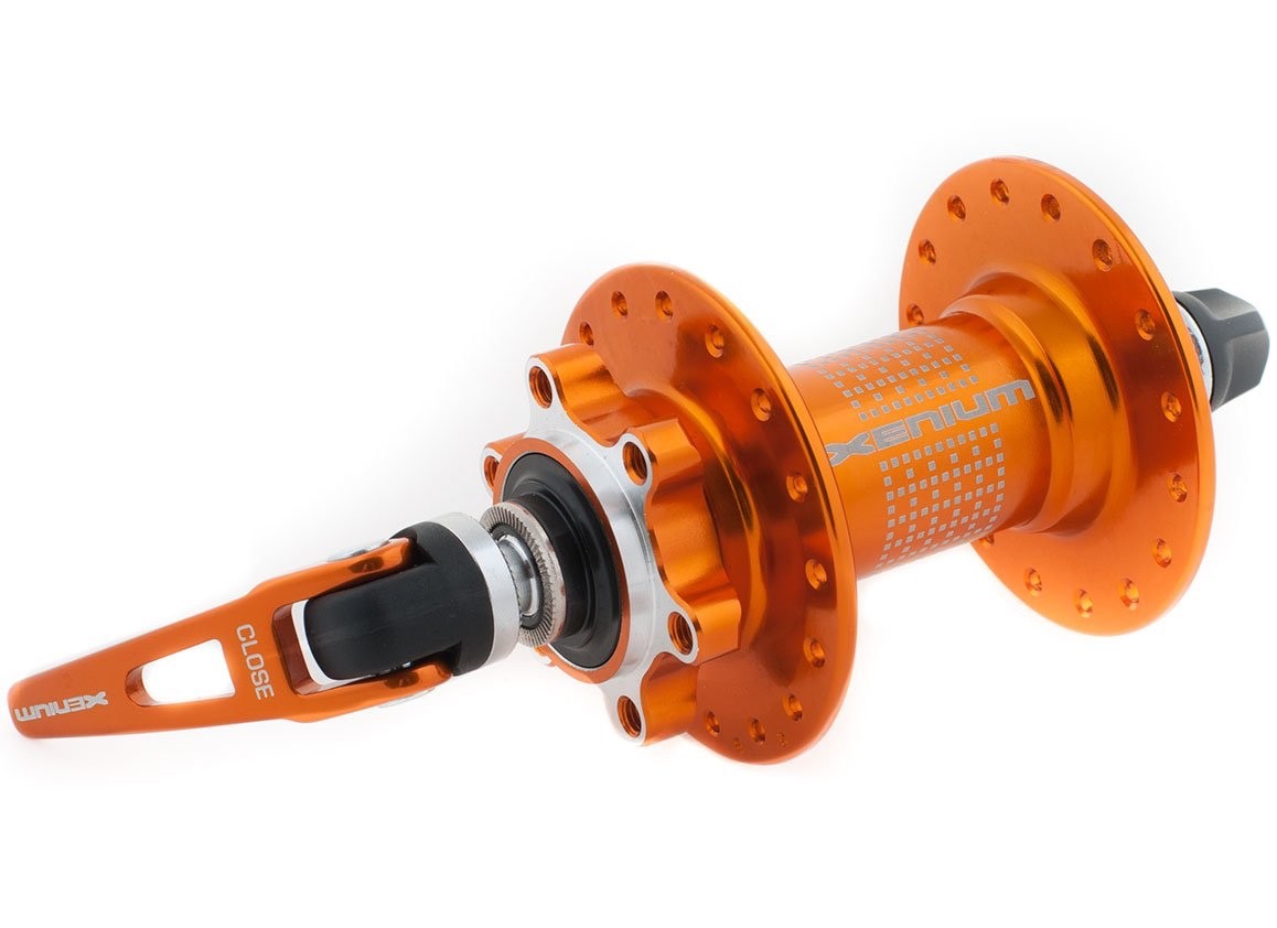 Втулка передняя под эксцентрик. Материал: алюминий. Подшипники: 2 закрытых промышленных подшипника. Подшипники 6001-2RS NBK Количество отверстий под спицы: 32. Крепление диска: 6 болтов. Вес: 190 гр.