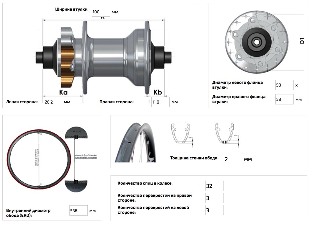 Длина спиц на правой стороне: 263 mm